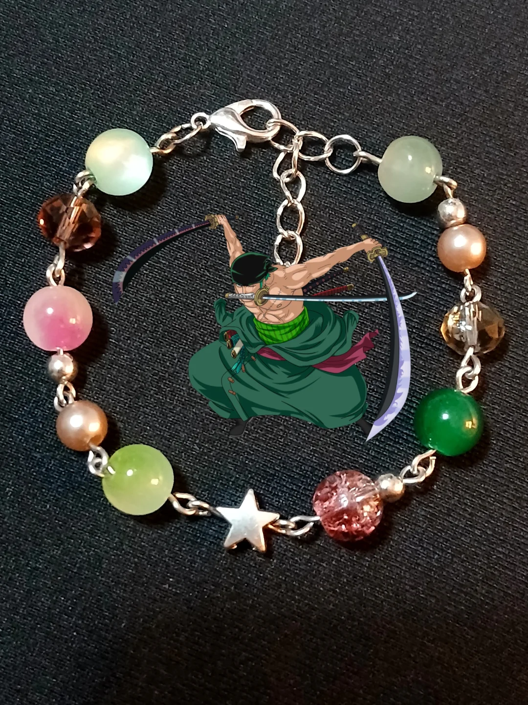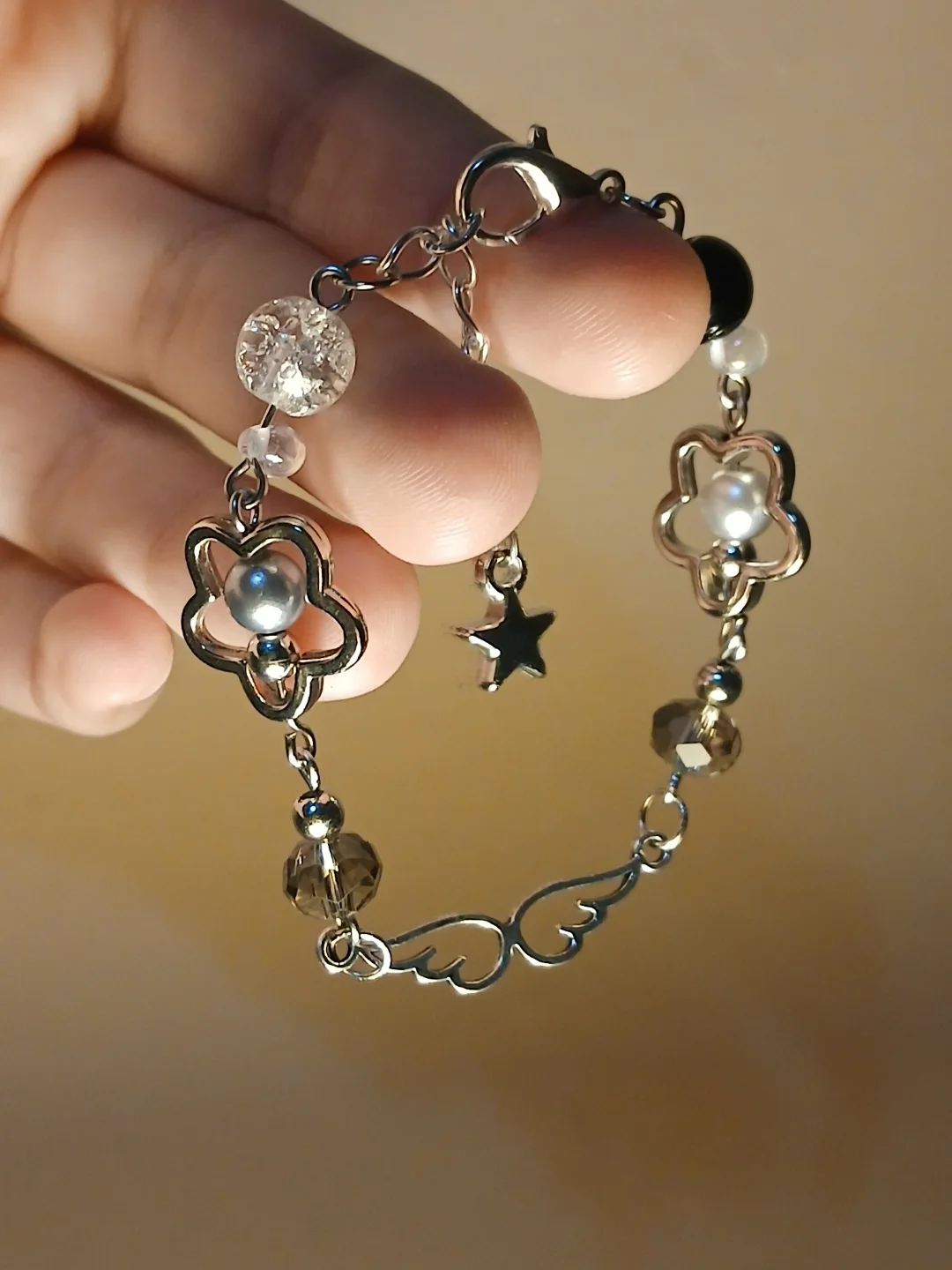 Pulsera con cuentas dijes y cuarzo