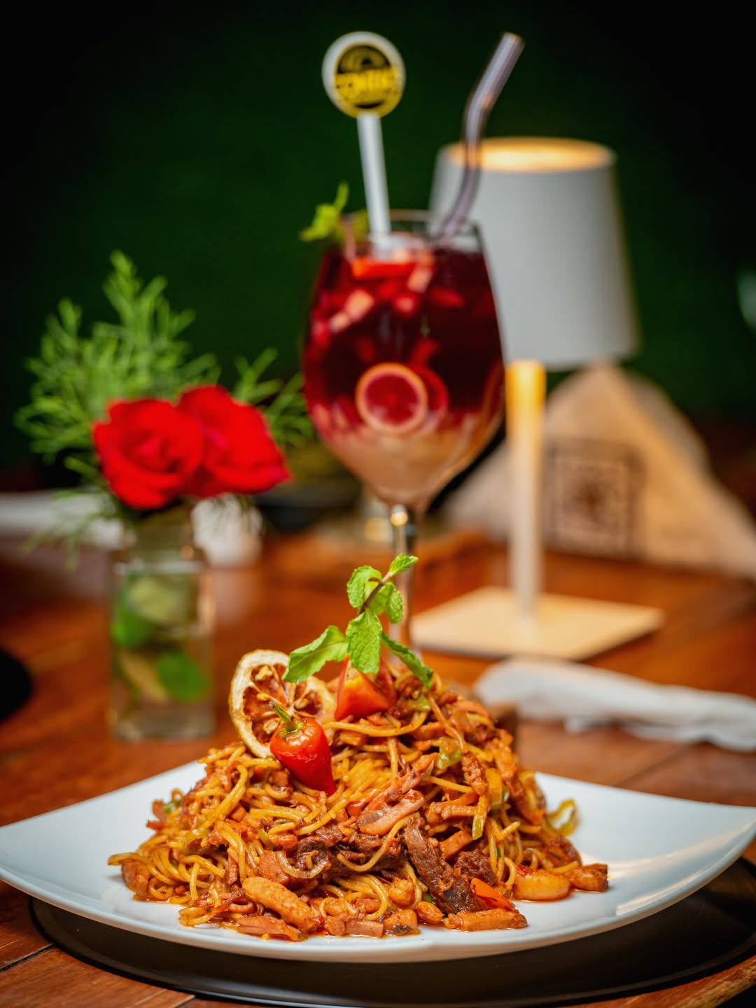 Conta's Empanadas ?✨ Chow Mein irresistible, con pastas salteadas al punto perfecto, vegetales frescos, mix de carnes debidamente cocidas y ese sabor asiático que envuelve desde el primer bocado. Acompañado de una sangría bien fría, frutal y refrescante, el balance ideal entre lo salado y lo dulce.