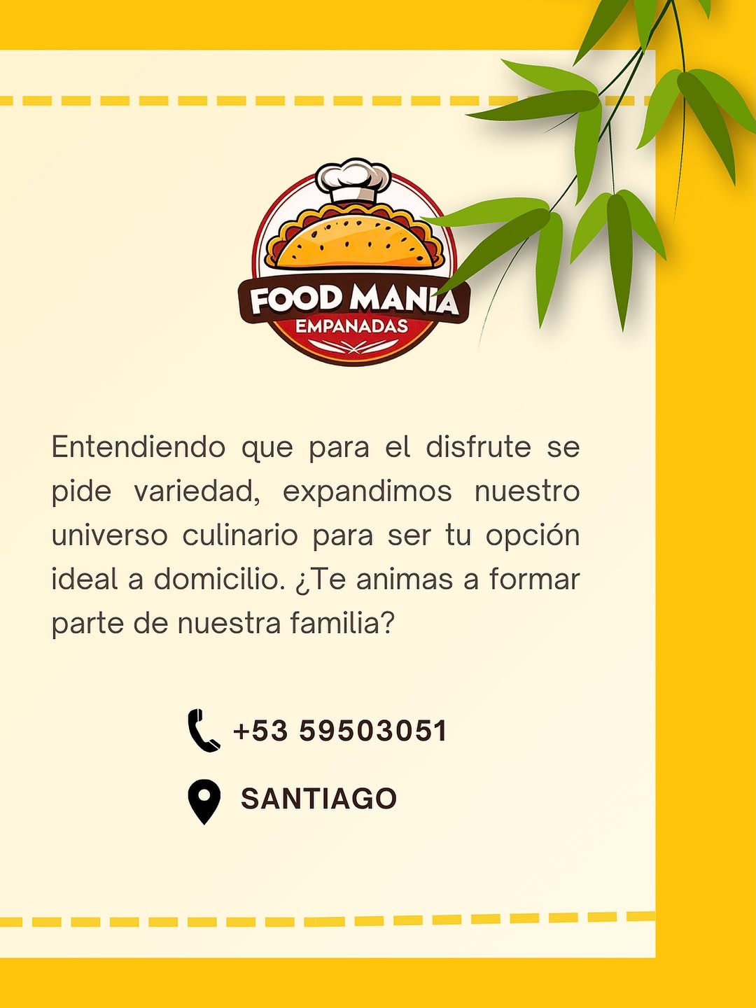 FOOD MANÍA El lujo también llega a tu puerta. Ofrecemos servicio a domicilio exclusivo en la ciudad de Santi...