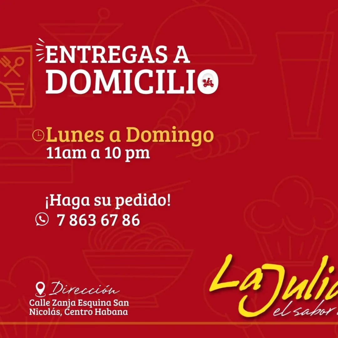 Desde 2011, La Juliana ha sido el mejor lugar para disfrutar de una exquisita pizza, un sabroso batido, tomar una cerveza fría y disfrutar de una excelente comida. "El sabor de una esquina". Es importante para La Juliana que las personas tengan un espacio para compartir en familia, ya que nos lo tomamos muy en serio. Pura tradición cubana e italiana pa ´comer y pa´ llevar, con un sabor inigualable, un lugar donde amarás más que la comida.