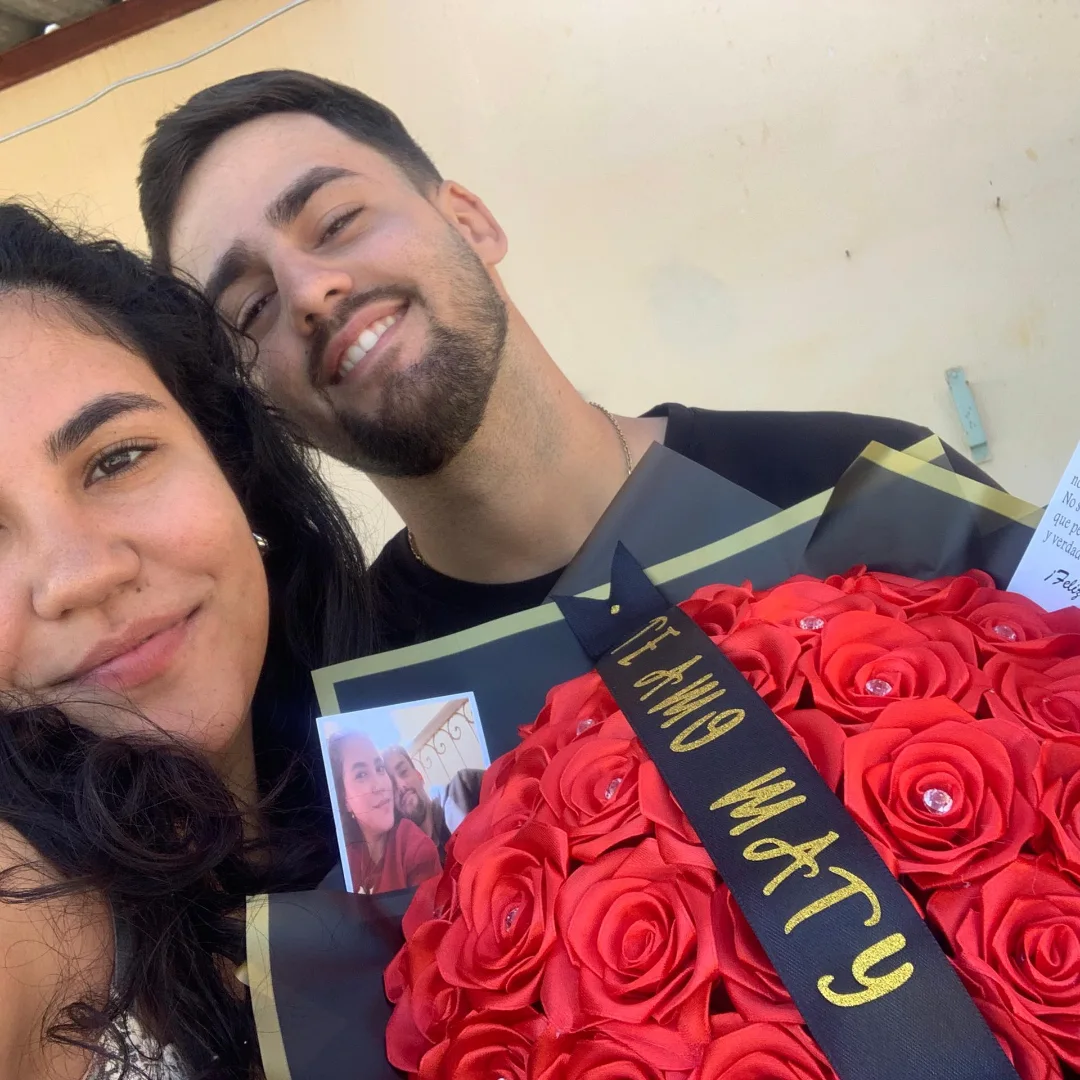 Regalar ramos, personalizar el regalo no es solo decir... Ok, quiero rosas rojas, envoltura negra y estas dos fotos.