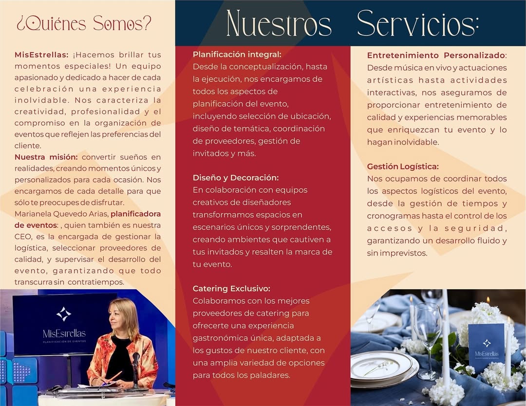 Un equipo apasionado y dedicado a hacer de cada celebración una experiencia inolvidable. Nos caracteriza la creatividad, profesionalidad y el compromiso en la organización de eventos que reflejen gustos y preferencias del cliente.