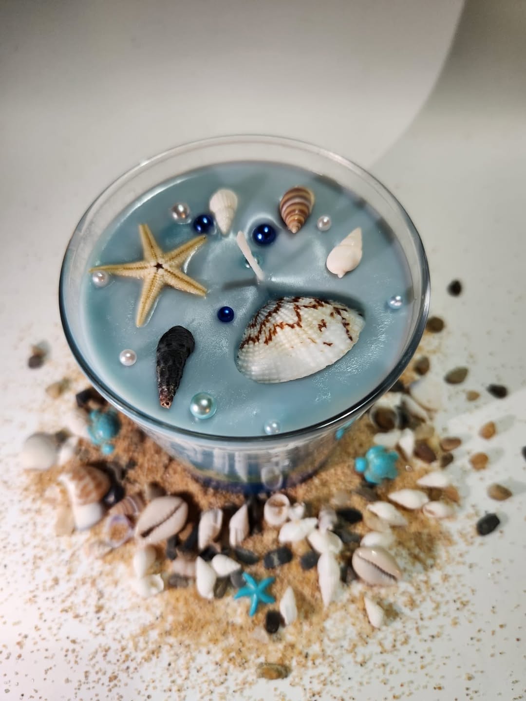 Esta vela artesanal con estrella y conchas es nuestro sneak peek de la colección más relajante. Una pieza de diseño que evoca paz y el azul profundo.