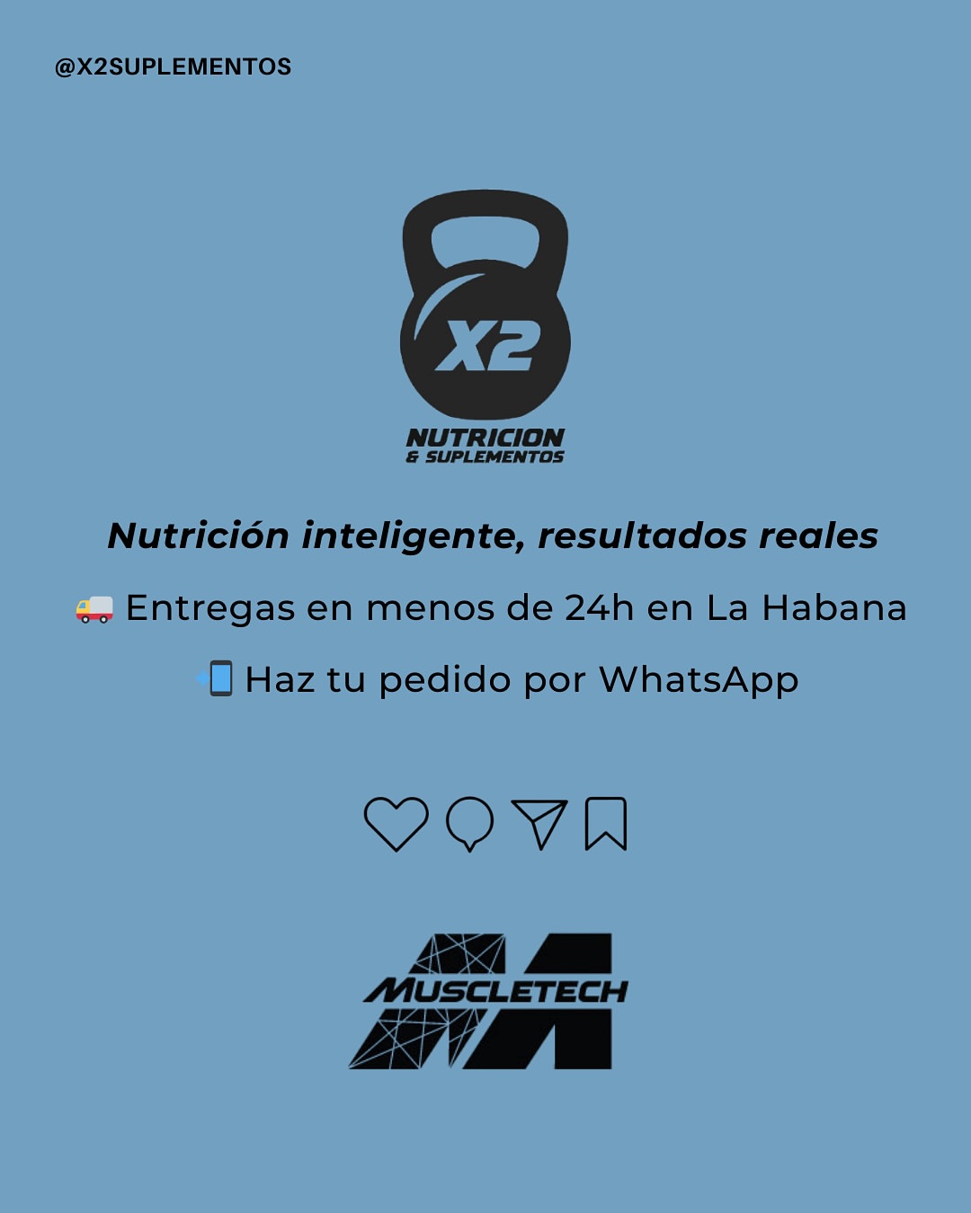 X2 Nutrición & Suplementos es una tienda especializada en suplementos deportivos 100% originales de la marca MuscleTech, importados directamente desde EE. UU. Ofrecemos productos de alta calidad para todo tipo de público que busca mejorar su rendimiento, salud y bienestar.